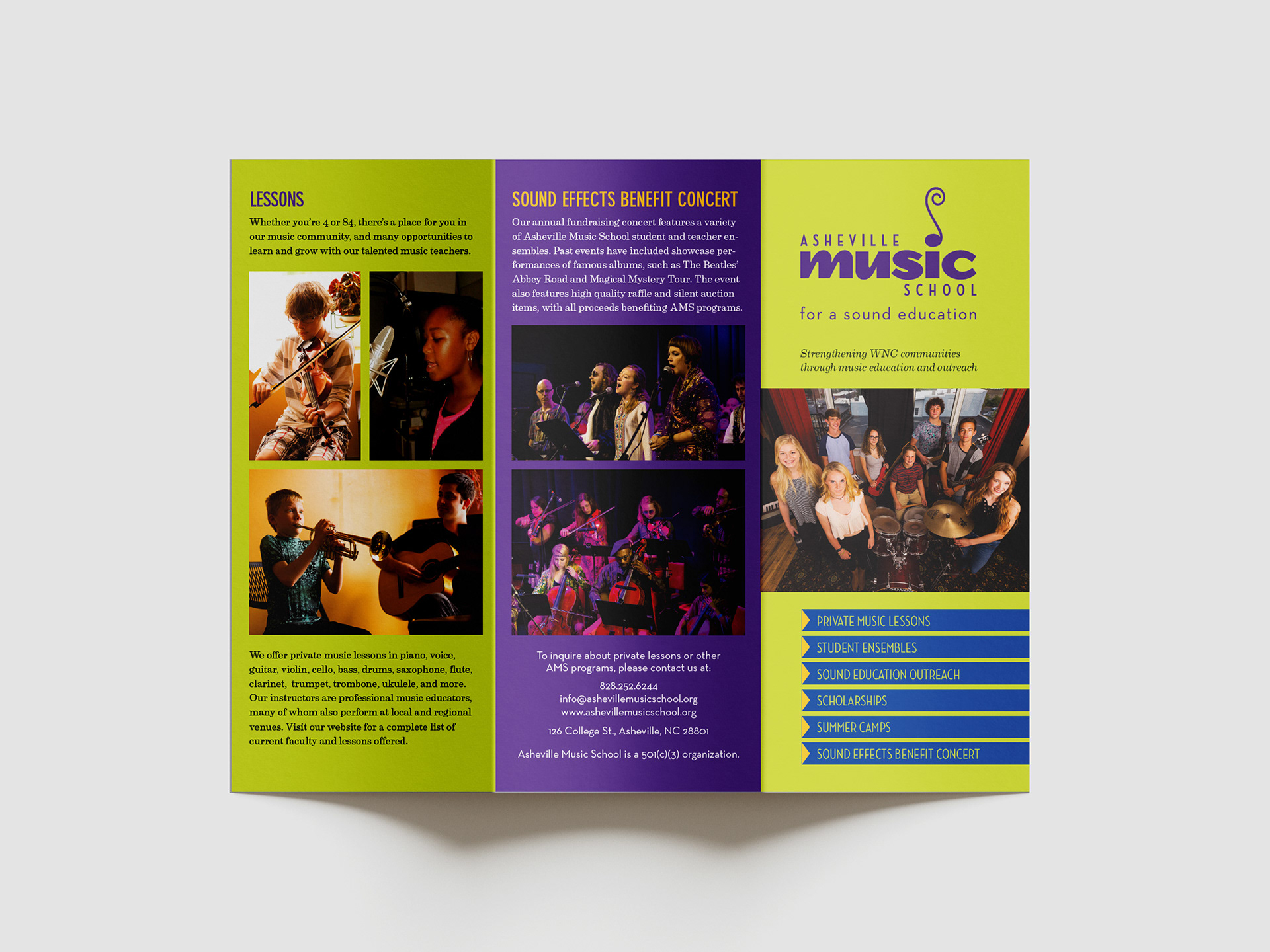 A brochure redesign for the Asheville Music School.